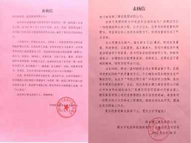 112022.02新乡建工建设有限公司和河南新飞智家科技有限公司向尊龙凯时官方入口-尊龙(中国)发来表扬信 -