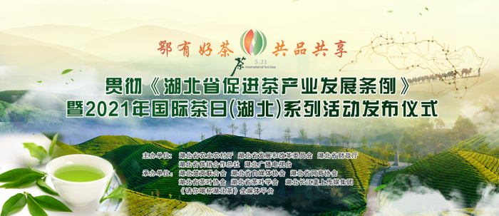 4月29日,湖北省农业农村厅、湖北省发展和改革委员会、湖北省财政厅、湖北省供销合作总社及湖北广播电视台,在省农业农村厅,开展以“鄂有好茶、共品共享”为主题,贯彻《湖北省促进茶产业发展条例》暨2021年国际茶日(湖北)系列活动在湖北省农业农村厅举行。